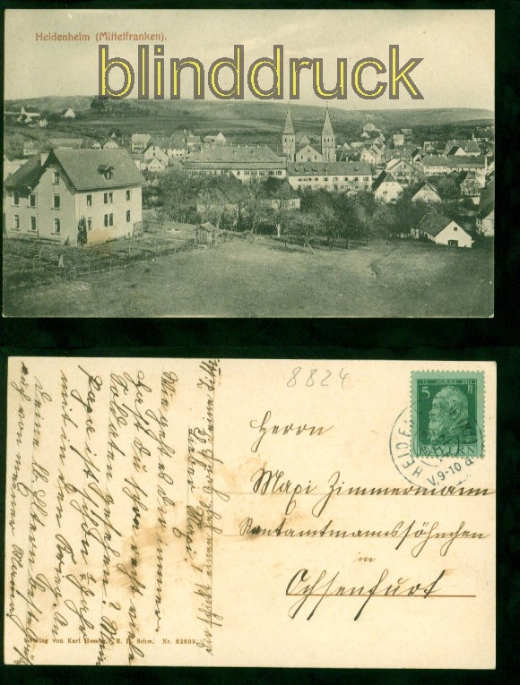 Bayern Heidenheim (Mittelfranken) sw-AK Panorama 1914 Karte gelaufen aus Heidenheim 10.12.1914 Erhaltung siehe Scan