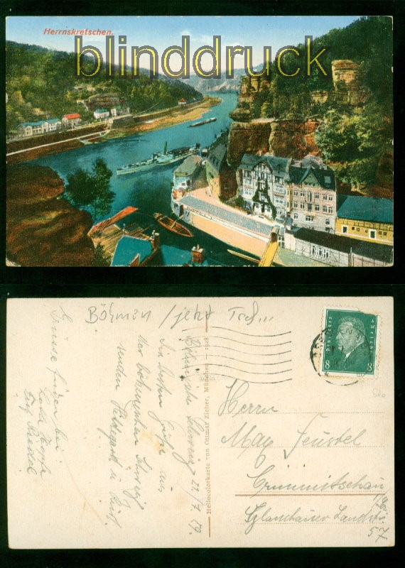 Böhmen Herrnskretschen Böhm. Schweiz farb-AK Totalansicht ungebraucht Karte nicht gelaufen Erhaltung siehe Scan