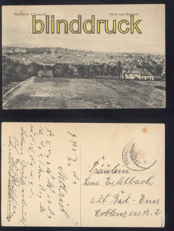 Hessen Hofheim (Taunus) sw-AK Blick vom Hochfeld Bahnpost Karte gelaufen mit Bahnpost nach Bad Ems Marke entfernt Erhaltung siehe Scan