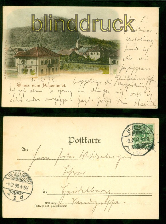 Baden-Württemberg Gruss vom Hohentwiel Litho-AK Singen 1898 nach Heidelberg Karte gelaufen aus Singen 3.12.1898 nach Heidelberg Erhaltung siehe Scan