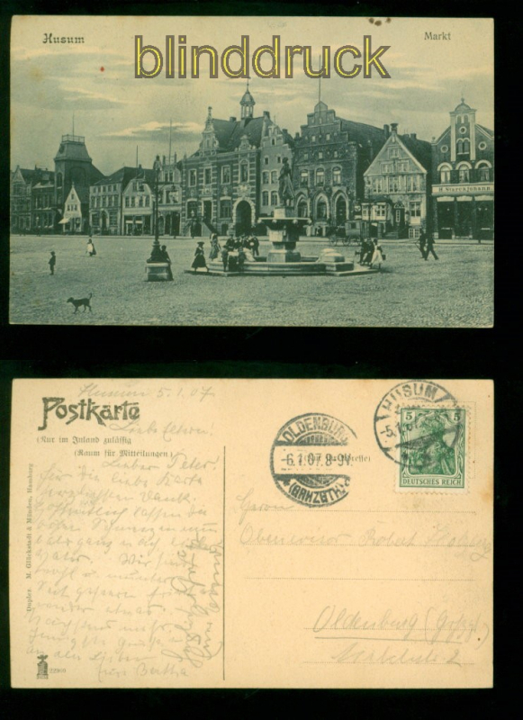 Husum sw-AK Markt 1907 nach Oldenburg (d10188)