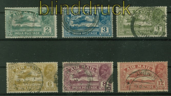 Indien Mi # 118/23 gestempelt Flugpostausgabe Doppeldecker Flugpostausgabe: Doppeldecker und Georg V komplette Ausgabe gestempelt Erhaltung siehe Scan