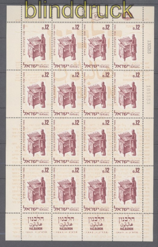 Israel Mi # 286 postfrischer Kleinbogen 100 Jahre Zeitung „Halbanon“. postfrischer Kleinbogen Erhaltung siehe Scan