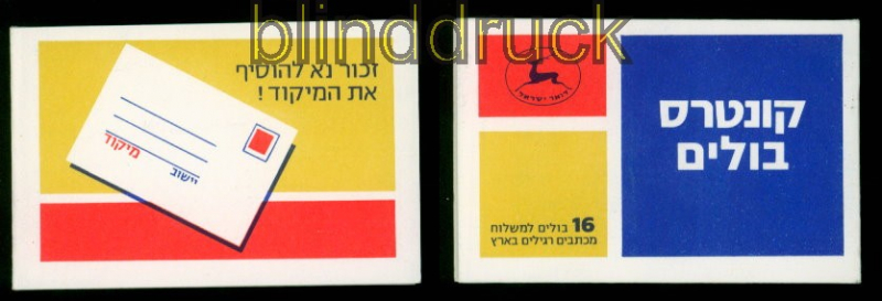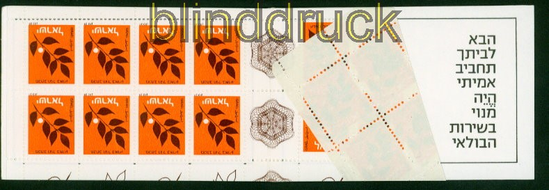 Israel Mi # 893 postfrisch im Markenheftchen verschnitten !!!!!! Ölbaumzweig orange/dunkelkarminbraun im Markenheftchen durch umknicken des rechten Heftchenblattes wurde das Heftchenblatt total verschnitten (siehe Scan) postfrisch Erhaltung siehe Scan