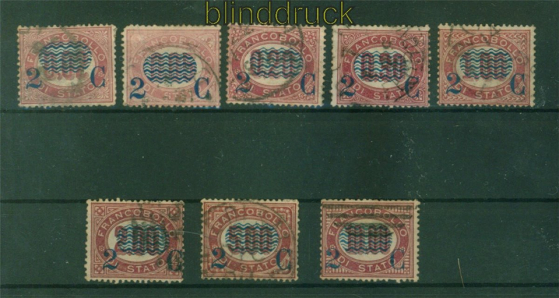 Italien Mi # 29/36 gestempelt Zeitungsmarken mit Aufdruck Zeitungsmarken Ausgabe 1878: Dienstmarken mit blauem Aufdruck komplette Ausgabe aus dem Bedarf gestempelt Erhaltung siehe Scan
