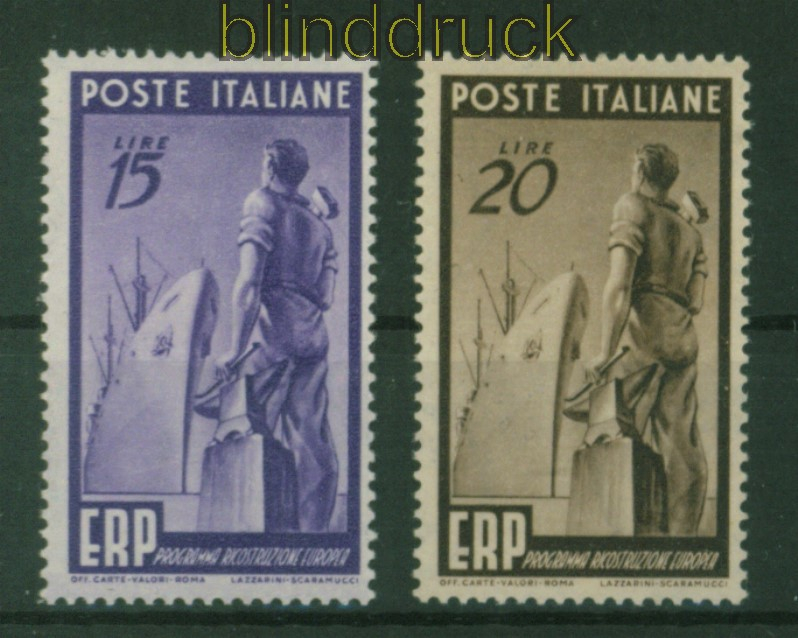 Italien Mi # 775/76 ungebraucht mit Falz Marshallplan ERP 1949 15 Lire und 20 Lire Marshallplan (ERP) ungebraucht mit Falz mit kaum sichtbarer Falzspur Erhaltung siehe Scan