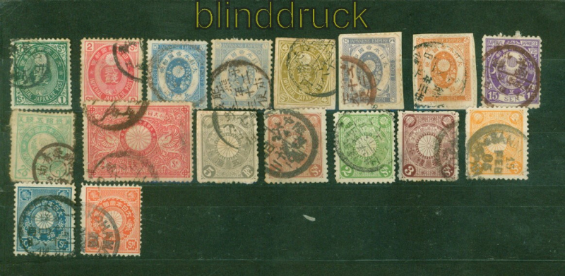 Japan gestempelt kleine Lot von 17 Marken teilweise auf Briefstück 17 ältere gestempelte Briefmarken teilweise auf Briefstücken oder mit Papierresten gestempelt Erhaltung siehe Scan