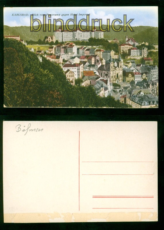 Böhmen Karlsbad farb-AK Blick vom Panorama gegen Hotel Imperial ungebraucht Karte nicht gelaufen Erhaltung siehe Scan