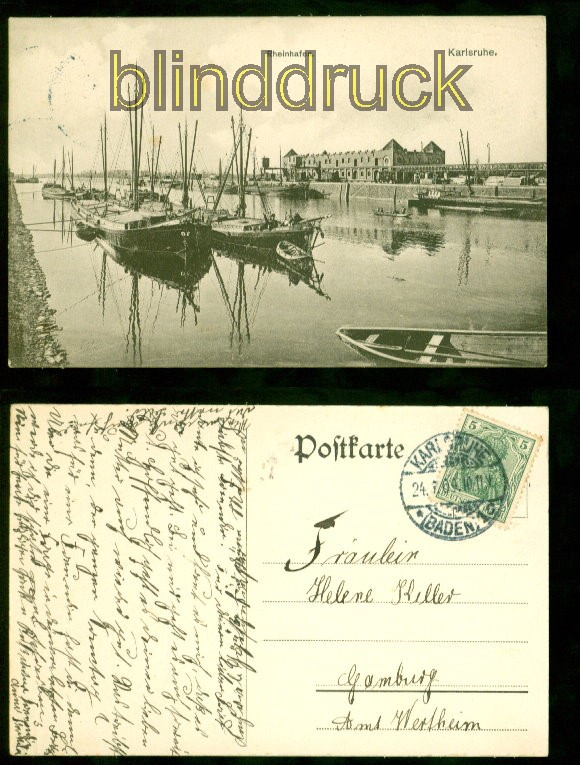 Baden-Württemberg Karlsruhe sw-AK Rheinhafen 1909 nach Gamburg Karte gelaufen aus Karlsruhe 24.7.1909 nach Gamburg Erhaltung siehe Scan