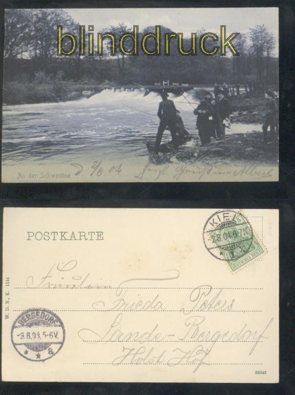 Schleswig-Holstein Kiel sw-AK Angler an der Schwentine 1904Karte gelaufen aus Kiel 28.04.1904 nach Sande-Bergedorf Erhaltung siehe Scan