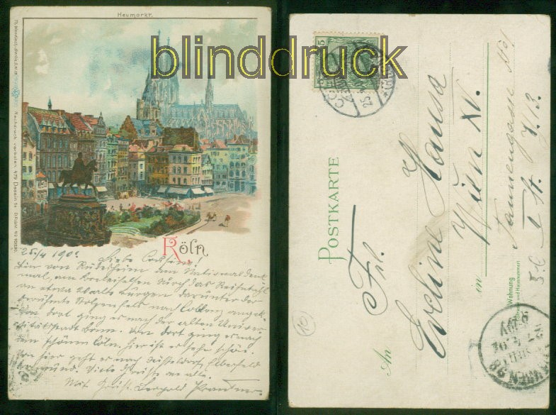 Nordrhein-Westfalen Köln farb-AK Heumarkt 1901 nach Wien Karte gelaufen aus Köln 25.04.1901 nach Wien Ankunftsstempel Erhaltung siehe Scan