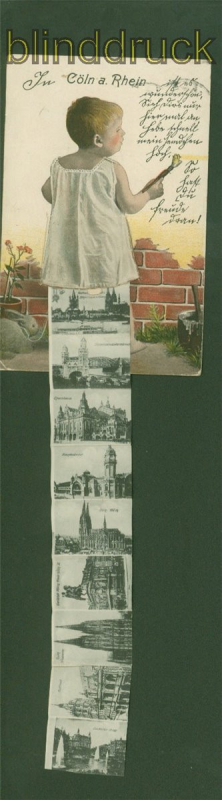 Nordrhein-Westfalen Köln farb-Leporello-AK mit 10 kleinen sw-Ansichten 1918 nach Berchtesgaden Karte gelaufen aus Köln 1.2.1918 nach Berchtesgaden Marke beschädigt Erhaltung siehe Scan