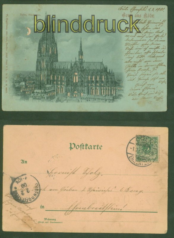 Köln sw-AK Dom Südseite Halt gegen das Licht 1900 nach Ehrenbreitstein (d9377)