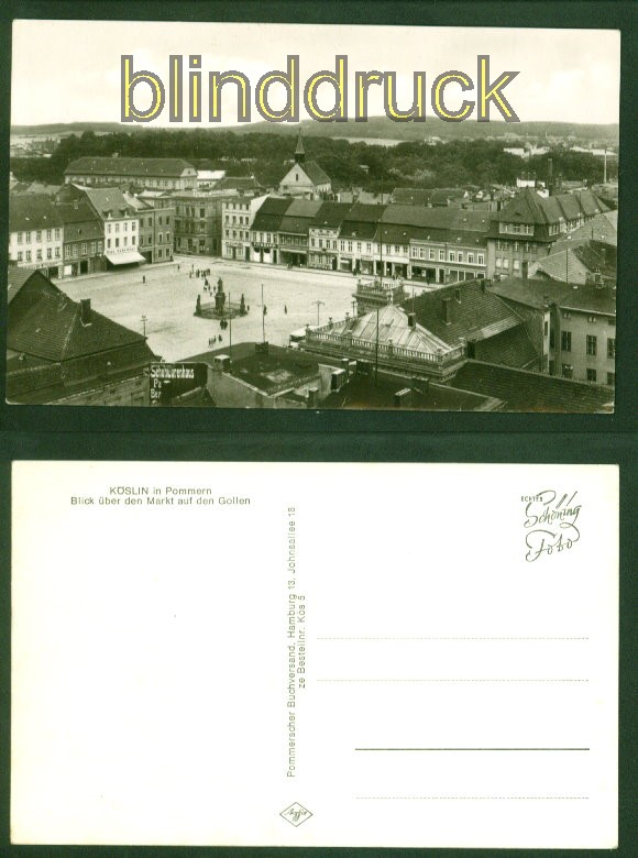 Pommern Köslin sw-AK Blick über den Markt auf den Gollen ungebraucht Karte nicht gelaufen leichter Bug in der Mitte Erhaltung siehe Scan