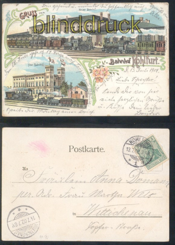 Kohlfurt farb-Litho-AK Gruss vom Bahnhof zwei Ansichten 1902 (d8305)