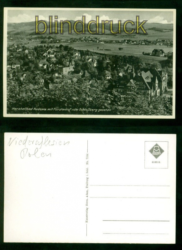 Schlesien Kudowa Herzheilbad sw-AK Fürstenhof vom Schloßberg gesehen ungebraucht Karte nicht gelaufen Erhaltung siehe Scan