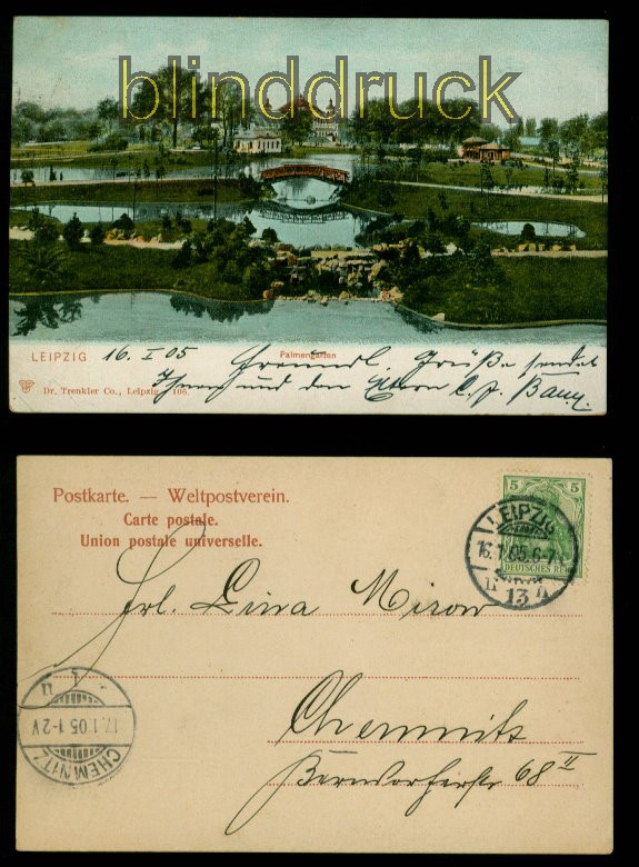 Leipzig farb-AK Palmengarten 1905 nach Chemnitz (d9910)
