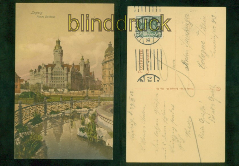 Sachsen Leipzig farb-AK neues Rathaus 1912 nach Köln Karte gelaufen aus Leipzig 30.3.1912 nach Köln Erhaltung siehe Scan