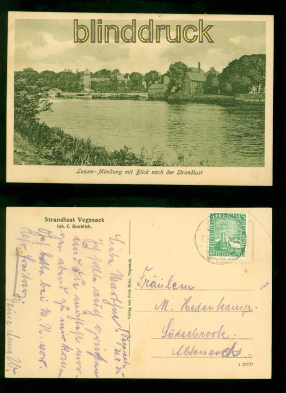 Bremen Lesum sw-AK Mündung mit Blick nach der Strandlust 1925 nach Süderbrook Strandlust Vegesack Karte gelaufen 20.8.1925 nach Süderbrook Erhaltung siehe Scan
