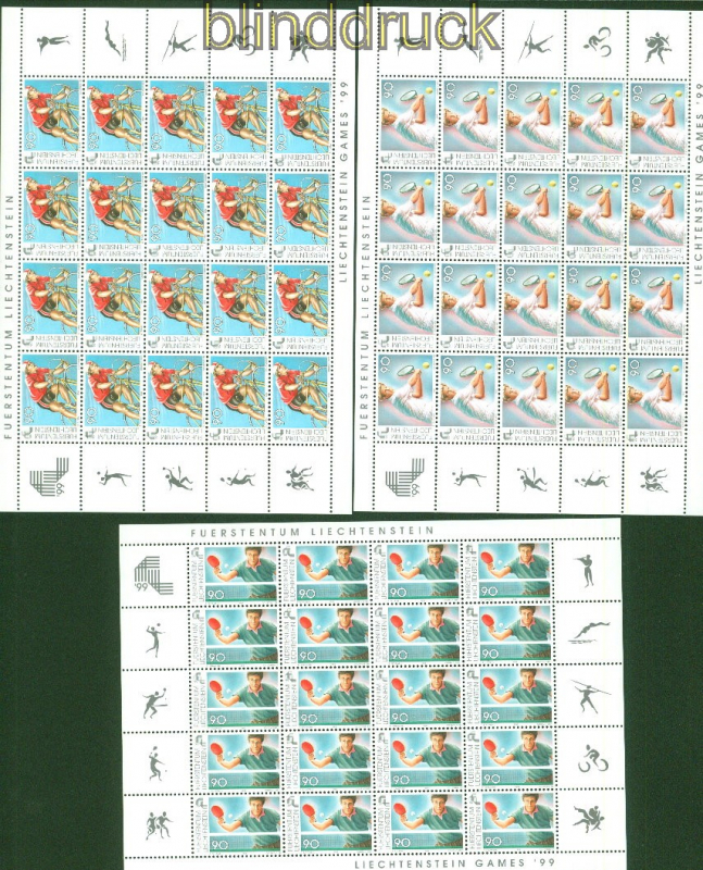 Liechtenstein Jahrgang 1999 komplett postfrisch in 20er-Bögen kompletter postfrischer Jahrgang mit allen Marken in 20er-Bögen Block ist einmal vorhanden einwandfrei postfrisch hohe postgültige Nominale von 686,50 Franken Katalogwert: 1782,00 Euro einwandfreie Erhaltung siehe Scan