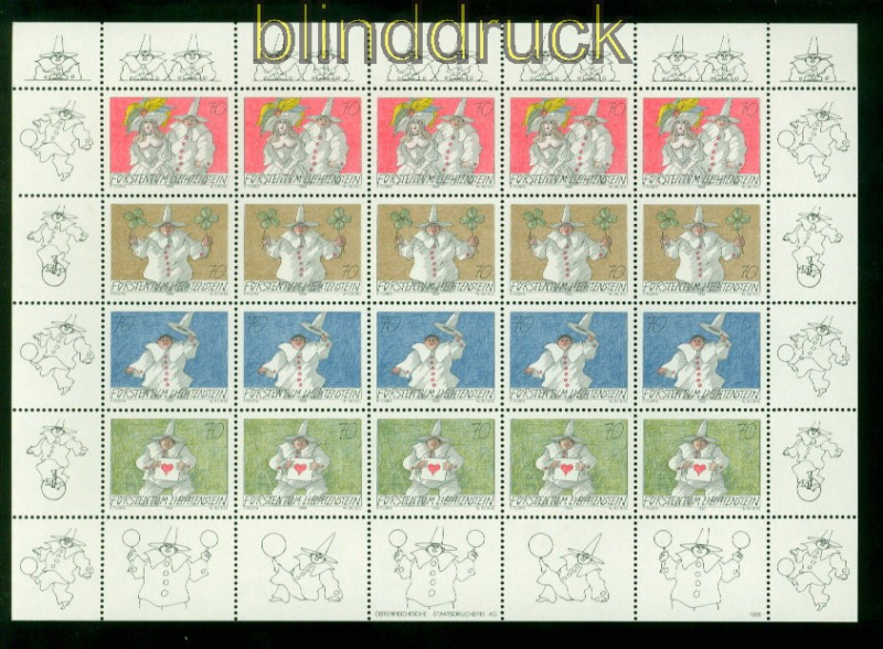 Liechtenstein Mi # 1173/76 postfrischer Kleinbogen Grußmarken Spaß am Brief Grußmarken Spaß am Brief komplette Ausgabe postfrischer Kleinbogen Erhaltung siehe Scan
