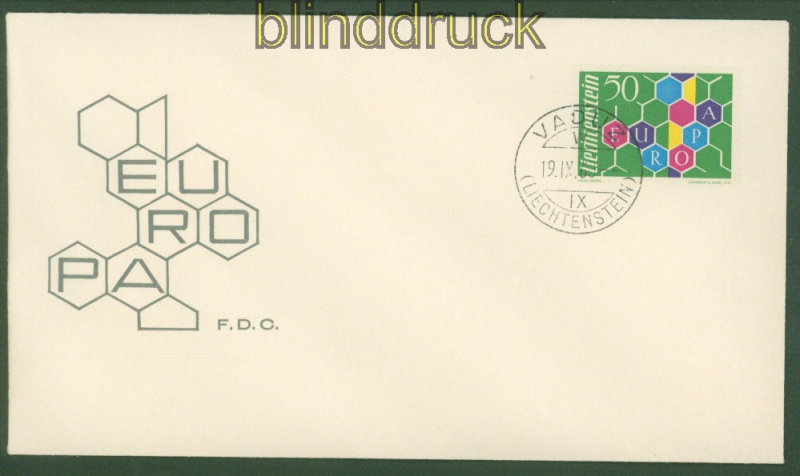 Liechtenstein Mi # 398 Ersttagsbrief FDC Europa-Cept 1960 Europa-Cept 1960 auf Ersttagsbrief FDC nicht adressiert Erhaltung siehe Scan