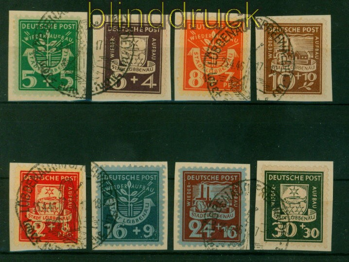 Lokalausgaben Lübbenau Mi # 1/8 A mit # 6 PF VII gestempelt auf Briefstück Lübbenau amtliche Ausgabe komplette Ausgabe Mi # 6 mit Plattenfehler VII (+ 55,00 Euro) gestempelt auf Briefstück Erhaltung siehe Scan