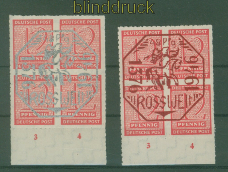 Lokalausgaben Rosswein Mi # 1 und 2 postfrische 4er-Blöcke vom Unterrand Rosswein nichtamtliche Ausgabe Aufdruckausgabe mit beiden Aufdruckfarben komplette Ausgabe postfrisch einheitlich im 4er-Block vom Unterrand Erhaltung siehe Scan