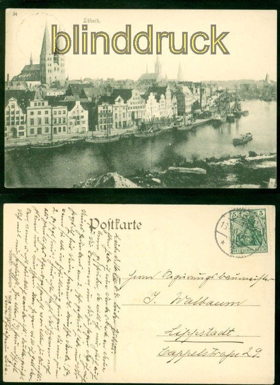 Schleswig-Holstein Lübeck sw-AK Teilansicht 1907 nach Lippstadt Karte gelaufen aus Lübeck 13.8.1907 nach Lippstadt Erhaltung siehe Scan