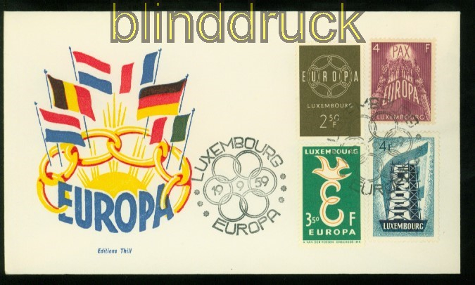 Luxemburg vier verschiedene Europamarken auf Schmuckumschlag 1959 (48565)