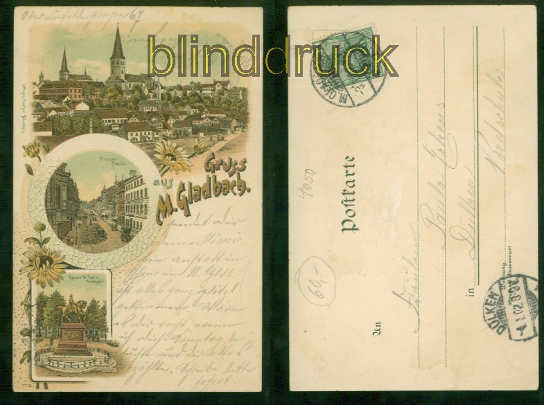 M.-Gladbach Litho-AK Gruss aus ..... drei Ansichten 1902 nach Dülken (d9430)