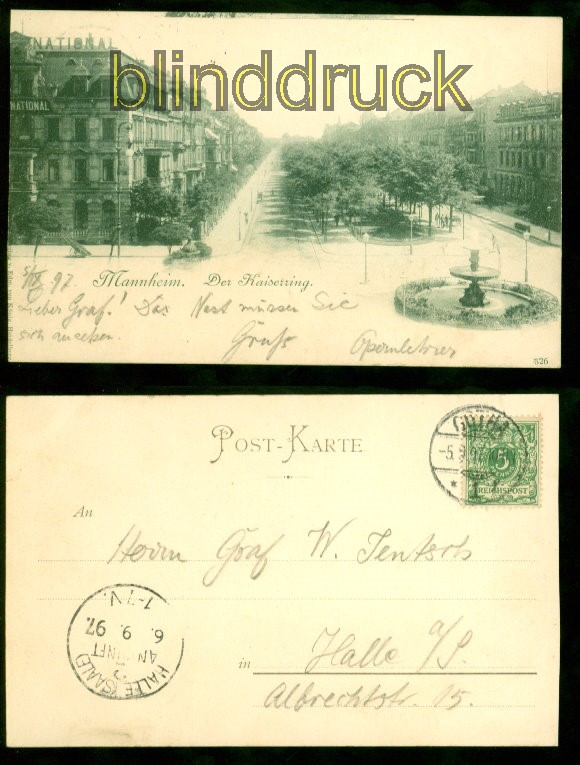 Mannheim sw-AK der Kaiserring 1897 nach Halle (d8674)