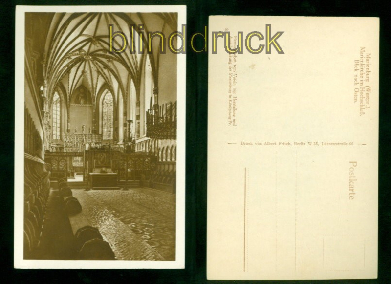 Westpreussen Marienburg i. Wpr. sw-AK Marienkirche im Hochschloß Blick nach Osten ungebraucht Karte nicht gelaufen Erhaltung siehe Scan