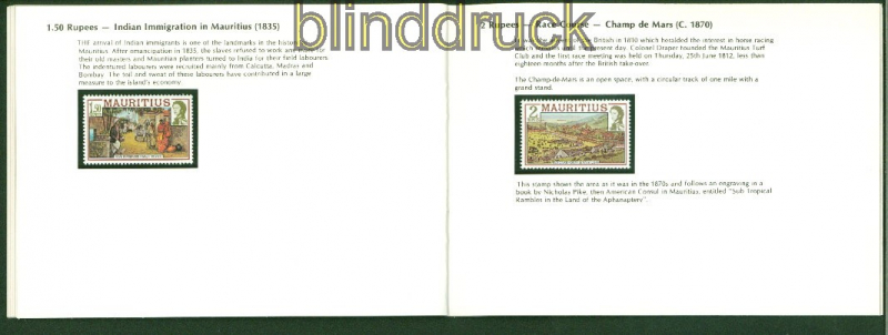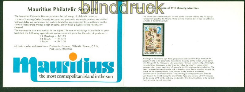 Mauritius Mi # 436/55 I X A postfrisch im Souvenierheft Historische Ereignisse und Landkarten ohne Jahreszahl komplette Ausgabe postfrisch im Souvenierheft Erhaltung siehe Scan