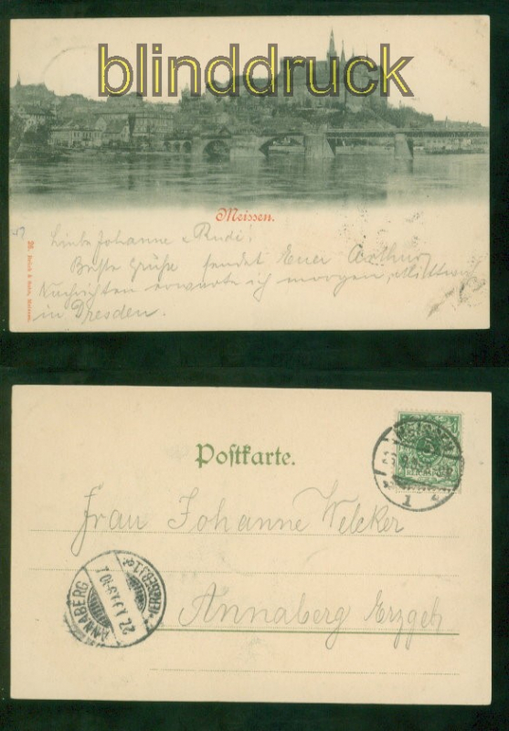 Sachsen Meissen sw-AK 1899 nach Annaberg Karte gelaufen aus Meissen 27.9.1899 nach Annaberg Ankunftsstempel Erhaltung siehe Scan