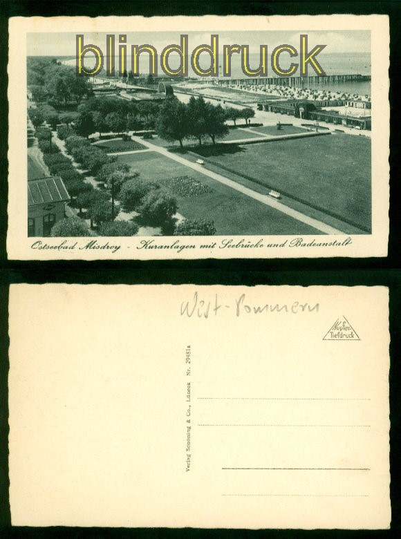 Pommern Misdroy Ostseebad sw-AK Kuranlagen mit Seebrücke und Badestrand ungebraucht Karte nicht gelaufen Erhaltung siehe Scan