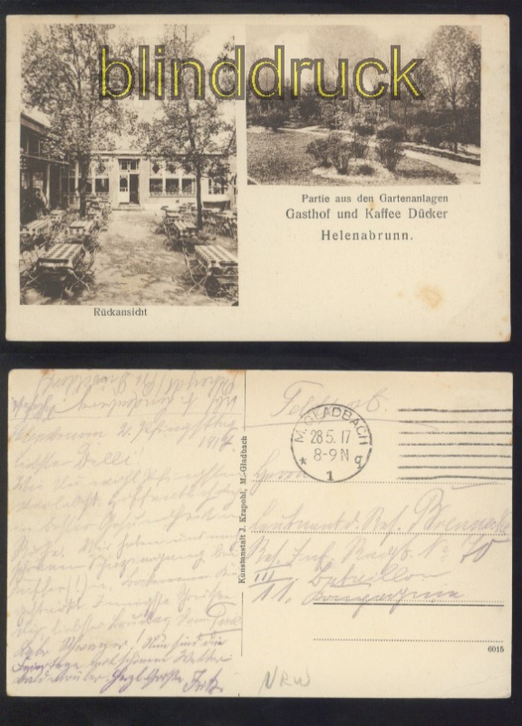 Mönchen-Gladbach sw-AK Gasthof und Kaffee Dücker Helenabrunn Feldpost 1917(d8155
