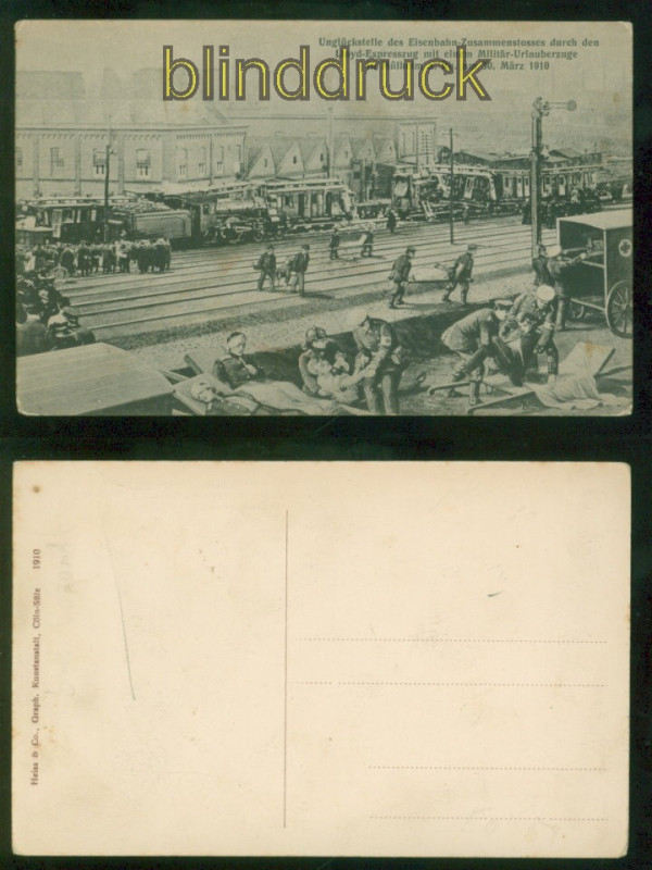 Nordrhein-Westfalen Mülheim a. Rh. sw-AK Eisenbahnunglück 1910 ungebrauchtUnglücksstelle des Eisenbahnzusammenstosses durch den Lloyd-Expresszug mit einem Militär-Urlauberzug in Mülheim a. Rh. am 30. März 1910 Karte nicht gelaufen Erhaltung siehe Scan
