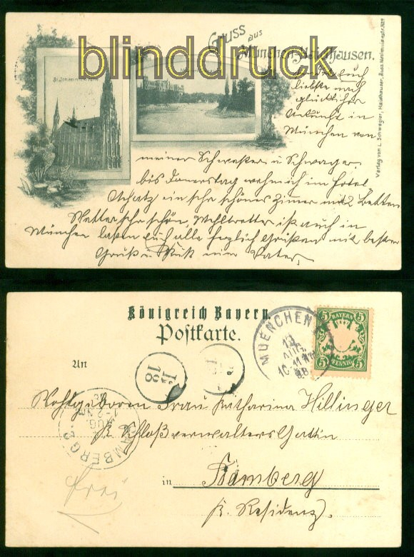 Bayern Gruss aus München-Haidhausen sw-AK zwei Ansichten 1898 nach Bamberg zwei Ansichten: St. Johanniskirche und Maximilianeum Karte gelaufen aus München 13.8.1898 nach Bamberg Ankunftsstempel Erhaltung siehe Scan