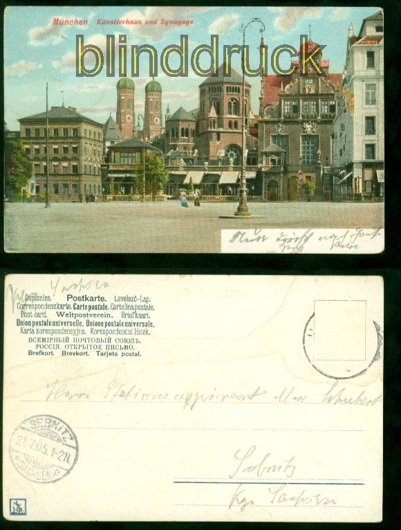 Bayern München farb-AK Künstlerhaus und Synagoge 1905 nach Sebnitz Karte gelaufen aus München 30.7.1905 nach Sebnitz Marke entfernt Ankunftstempel Erhaltung siehe Scan