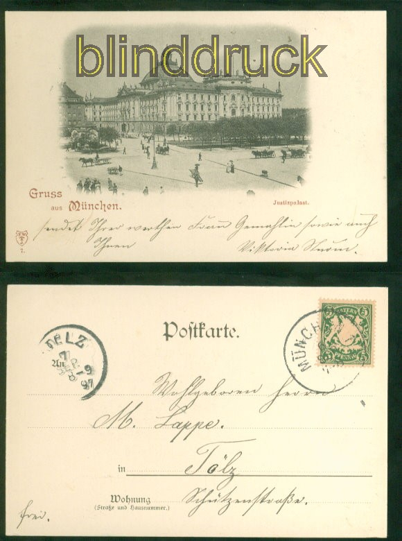 Bayern Gruss aus München sw-AK Justizpalast 1897 nach Toelz Karte gelaufen aus München 6.9.1897 nach Toelz Ankunftsstempel Erhaltung siehe Scan