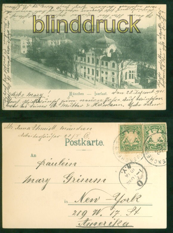 Bayern München sw-AK Isarlust 1902 in die USA Karte gelaufen aus München 28.12.1902 in die USA Erhaltung siehe Scan