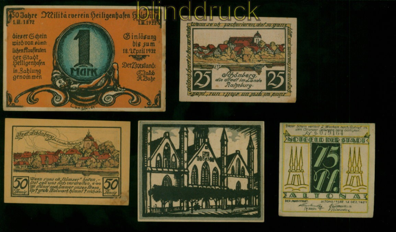 Notgeld 12 Notgeldscheine aus verschiedenen Städten1921/1922 12 verschiedene Notgeldscheine aus verschiedenen Städten viel Schleswig-Holstein Altona, Lübeck, Schönberg, Lütjenburg, Geestemünde, Barntrup, Stavenhagen, Heiligemnhafen, Gatersleben aus der Zeit der Inflation 1921/1922 Erhaltung siehe Scan