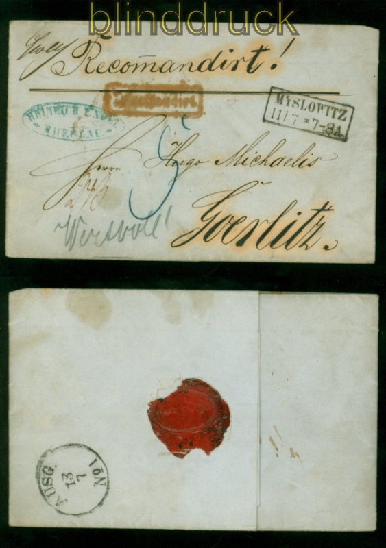Myslowitz 11.7.1859 Reco-Brief nach Goerlitz mit Inhalt (57201)