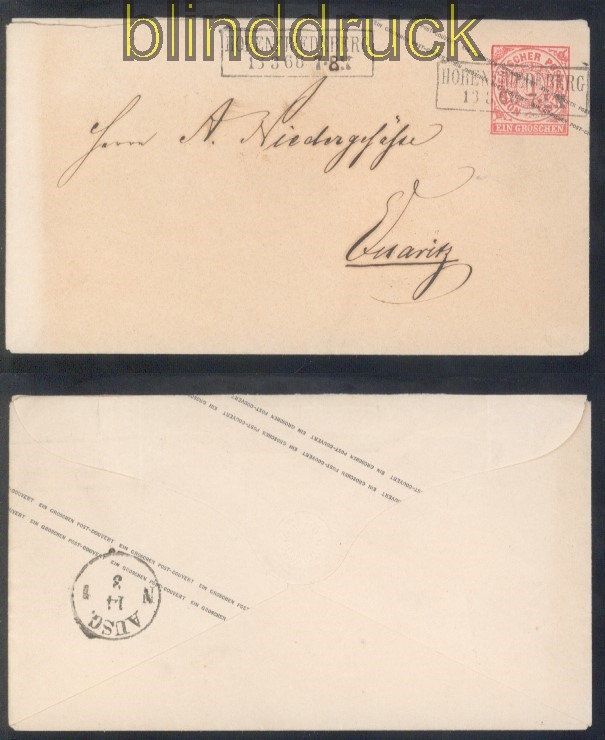 Norddeutscher Postbezirk NDP Ganzsachenumschlag GSU U 1 A b Hohenfriedeberg 13.3.1868 nach Quaritz 1 Groschen Ganzsachenumschlag schwarzer Überdruck gelaufen aus Hohenfriedeberg 13.3.1868 nach Quaritz Feuser # 1500 Erhaltung siehe Scan