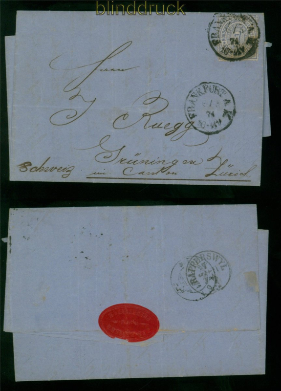 Norddeutscher Postbezirk NDP Mi # 22 EF Auslandsbrief Frankfurt 6.5.1871 in die Schweiz 7 Groschen gezähnt als Einzelfrankatur EF auf Auslandsbrief gelaufen aus Frankfurt 6.5.1871 in die Schweiz Erhaltung siehe Scan