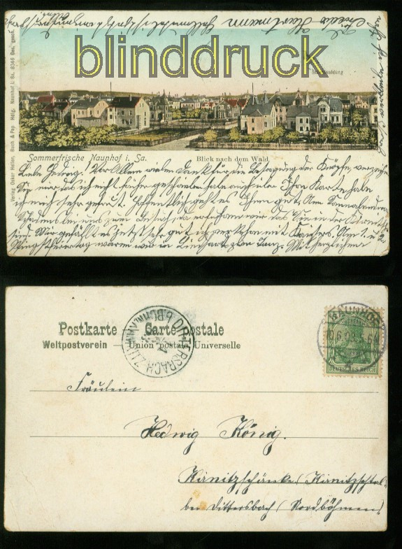 Sachsen Naunhof i. Sa Sommerfrische farb-AK Blick nach dem Wald 1903 Karte gelaufen aus Naunhof 10.6.1903 nach Dittersbach bei Böhm.-Kamnitz Erhaltung siehe Scan