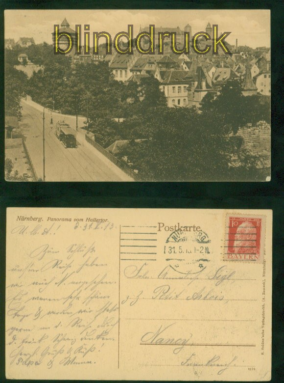 Bayern Nürnberg sw-AK Panorama vom Hallerthor 1913 nach Nancy in Frankreich Karte gelaufen aus Bürnberg 31.5.1913 nach Nancy in Frankreich Erhaltung siehe Scan