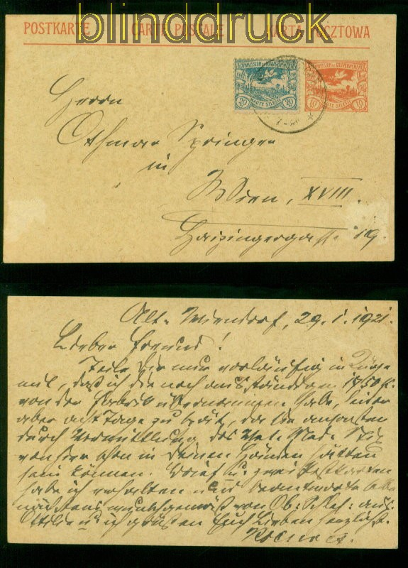 Abstimmungsgebiete Oberschlesien GSK P 3 in MiF mit # 18 Steubendorf 29.1.1921 nach Berlin 10 Pfennig Ganzsachenkarte mit Zusatzfrankatur 20 Pfennig Freimarken gelaufen aus Steubendorf 29.1.1921 nach Berlin Ortsstempelnummer laut Handbuch: 335.1 vorderseitig Klebespuren Erhaltung siehe Scan