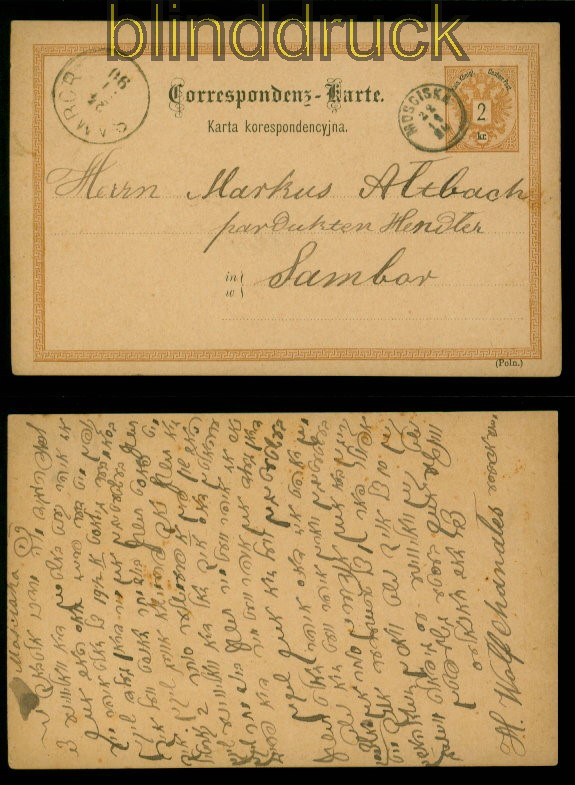 Österreich GSK 2 Kreuzer braun Fingerhutstempel Mosciska 1898 n Sambor (55263)